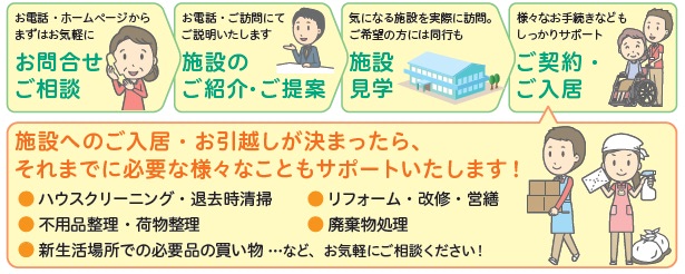介護施設への入居を希望する高齢者に対し、ニーズに沿った施設をご紹介します。