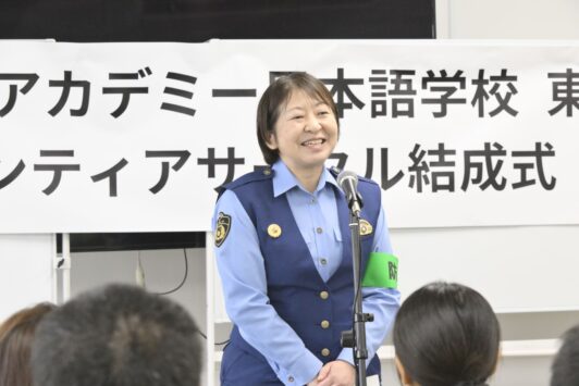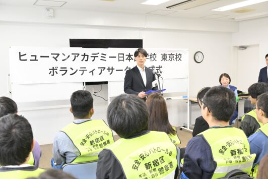 ●当校の学生による「ヒューマンアカデミー日本語学校ボランティアサークル」を正式結成しました。 ●戸塚警察署より「防犯ボランティア団体モデル校」に指定され、新宿区危機管理課と連携し、防犯・地域清掃・啓発活動を展開します。 ●当校では日本語学習に加え、地域社会で生きる実践的教育を推進します。 |