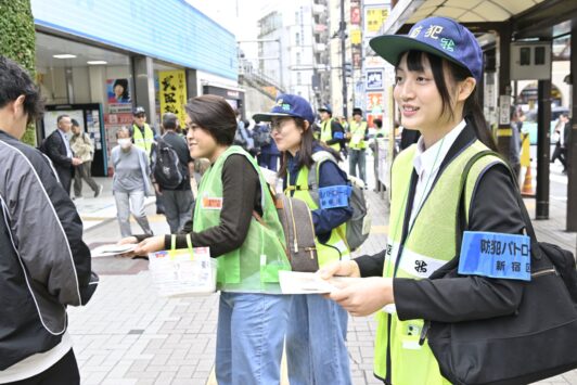【高田馬場駅前にて防犯広報の初活動】