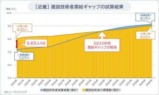 [近畿エリア編]建設技術者・技能工の2040年人材需給ギャップを試算