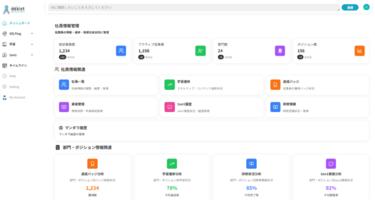 「assist for business」は、「教育コンテンツ提供」「eラーニングシステム」「エンゲージメントシステム」の3つの領域をカバーする、AI駆動型人材育成プラットフォームです。従業員の「なりたい自分の姿」と企業の「なってほしい姿」のすり合わせを実現し、学習の動機付け不足や、学習成果と業務評価の乖離といった課題を解消します。
