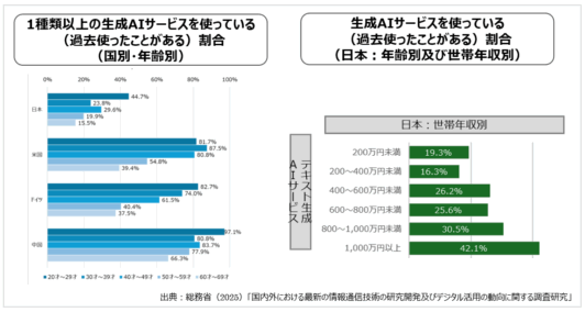 4.日本は生成AI利用率が低い一方、高年収層は利用率が高い