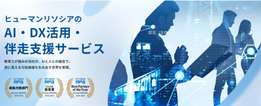 ■マーケティング部門が主導する、全社員によるAI活用推進プロジェクト「GEN-PRO」の実施。また、自社での活用ノウハウを活かし、企業のAI・DX・RPA活用を促進・伴走支援するサービスを提供。(ヒューマンリソシア株式会社)