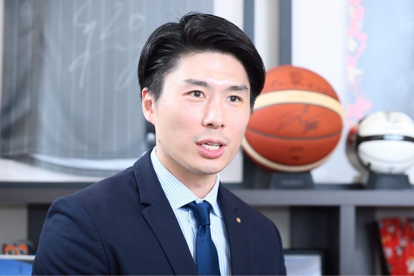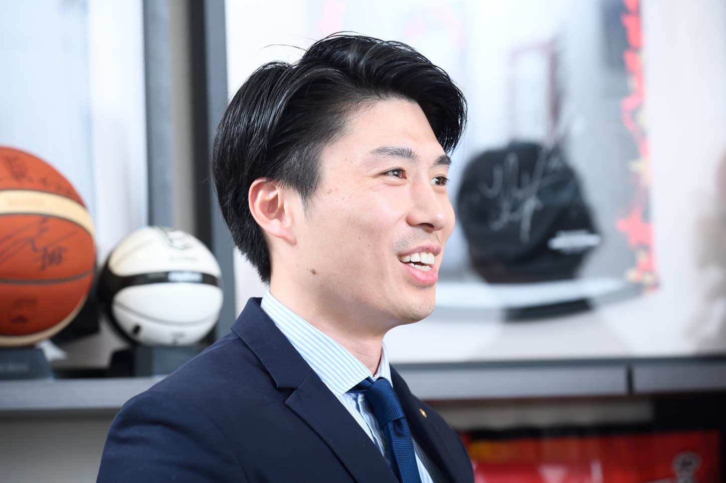 プロバスケットボールクラブ 大阪エヴェッサで長年選手として活躍し、現在はゼネラルマネージャーとしてチームを率いる今野GM。