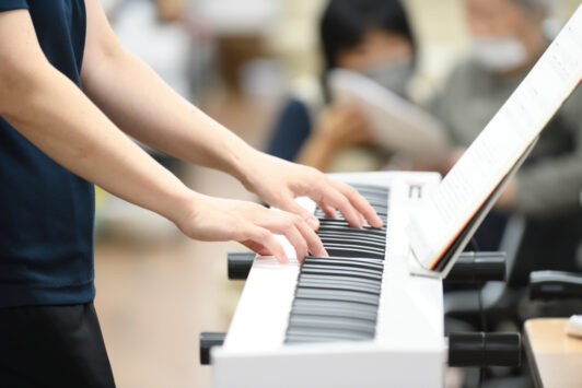 音楽療法士は、講師とは違い、指示もしないし、強制もしません。医療現場や介護施設などに赴き、自分で考えたプログラムを行います。参加は自由です。それでも、音楽が鳴り始めると、その場にいるみなさんが楽しそうに歌い、体を動かしてくれる。どんな人の中にも音楽があり、それを引き出していくような仕事だと感じました。私が楽しめば、相手にも伝わる。私が一方的に演奏するのではなく、その場にいるみんなで音楽を作り上げるような時間を過ごすことで、音楽療法士の魅力にはまり、活動を広げていきました。